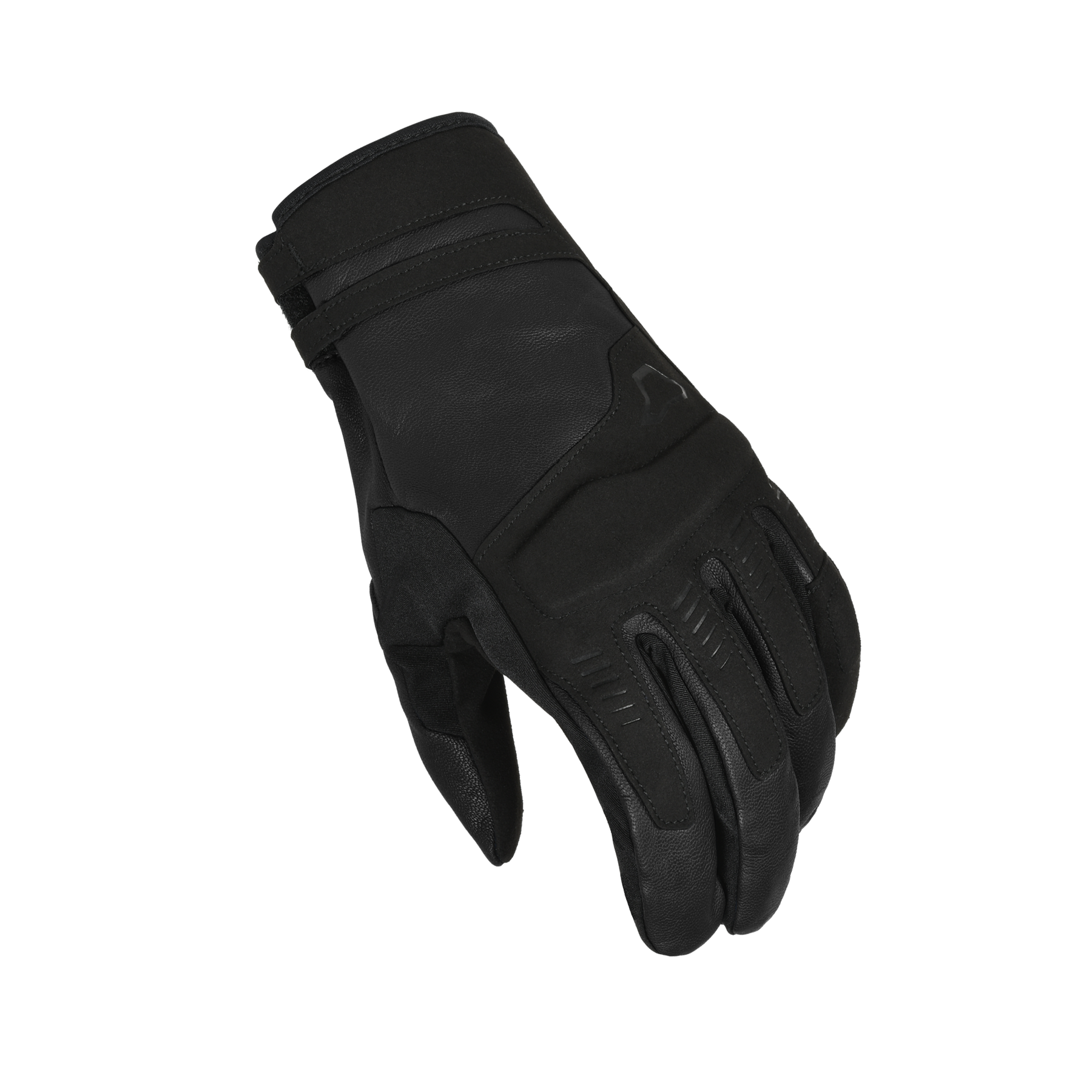 A short-cuffed, waterproof glove with soft knuckle protection and a nubuck palm with a rubber-like protector, suited for riders in mild conditions.