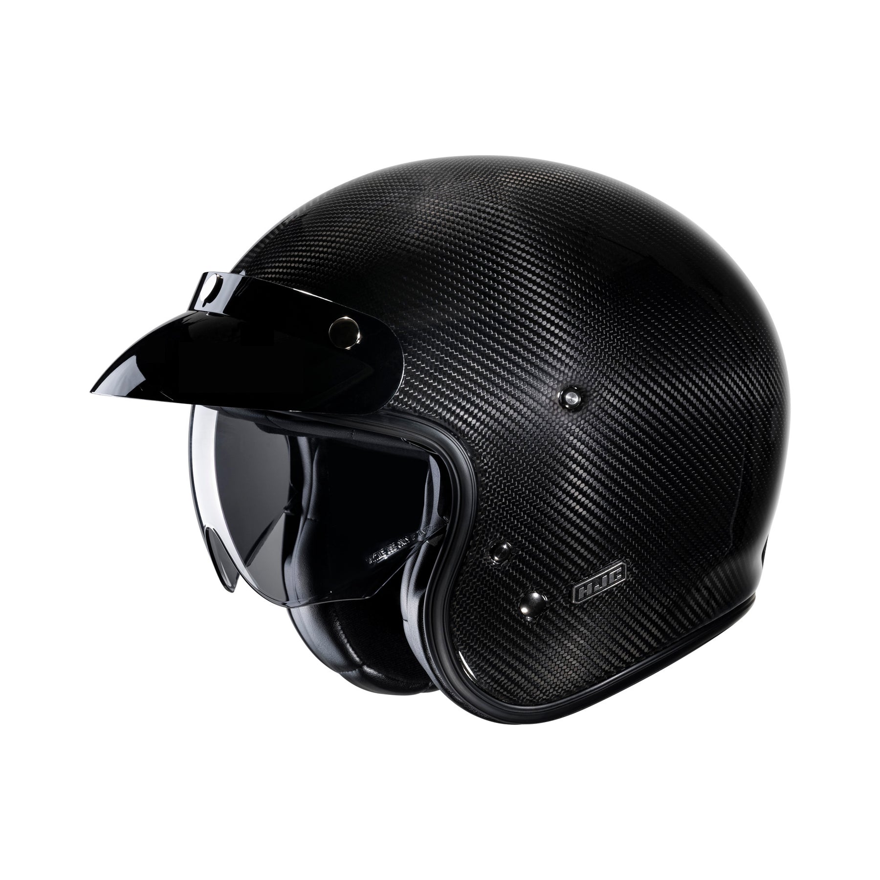 De V31 carbon is een retro-stijl open helm die is samengesteld uit een Advanced Carbon Fiber Shell om een lichtgewicht helm te bieden, met een superieure pasvorm en comfort met behulp van de geavanceerde CAD-technologie. Deze ¾-helm heeft een geïntegreerd zonnescherm met 3 standen en een antikrascoating die gemakkelijk kan worden ingezet om omhoog of omlaag te schuiven. Om het vintage gevoel te versterken is de V31 voorzien van leer en suède interieur. De oorkussentjes zijn afneembaar en wasbaar en de luidsprekerzakken zijn voorbereid voor Bluetooth-communicatie.
