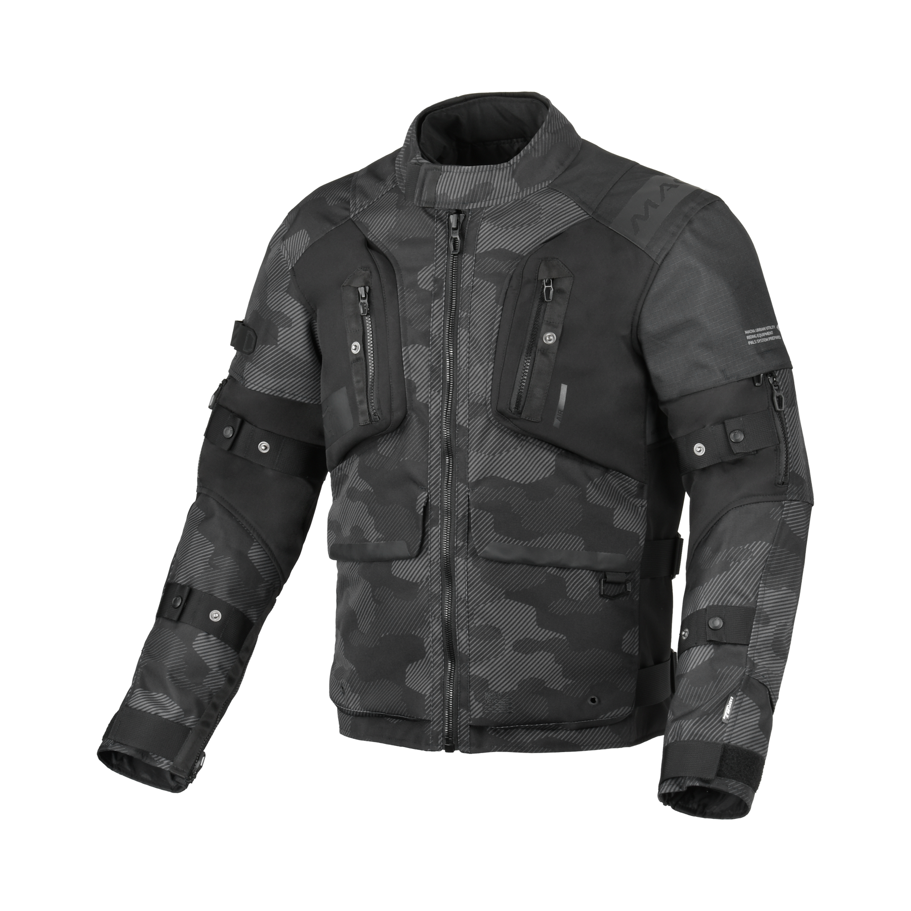 Een 2-laags jas met een unieke utility look voor alle soorten rijders in alle omstandigheden, inclusief regen.