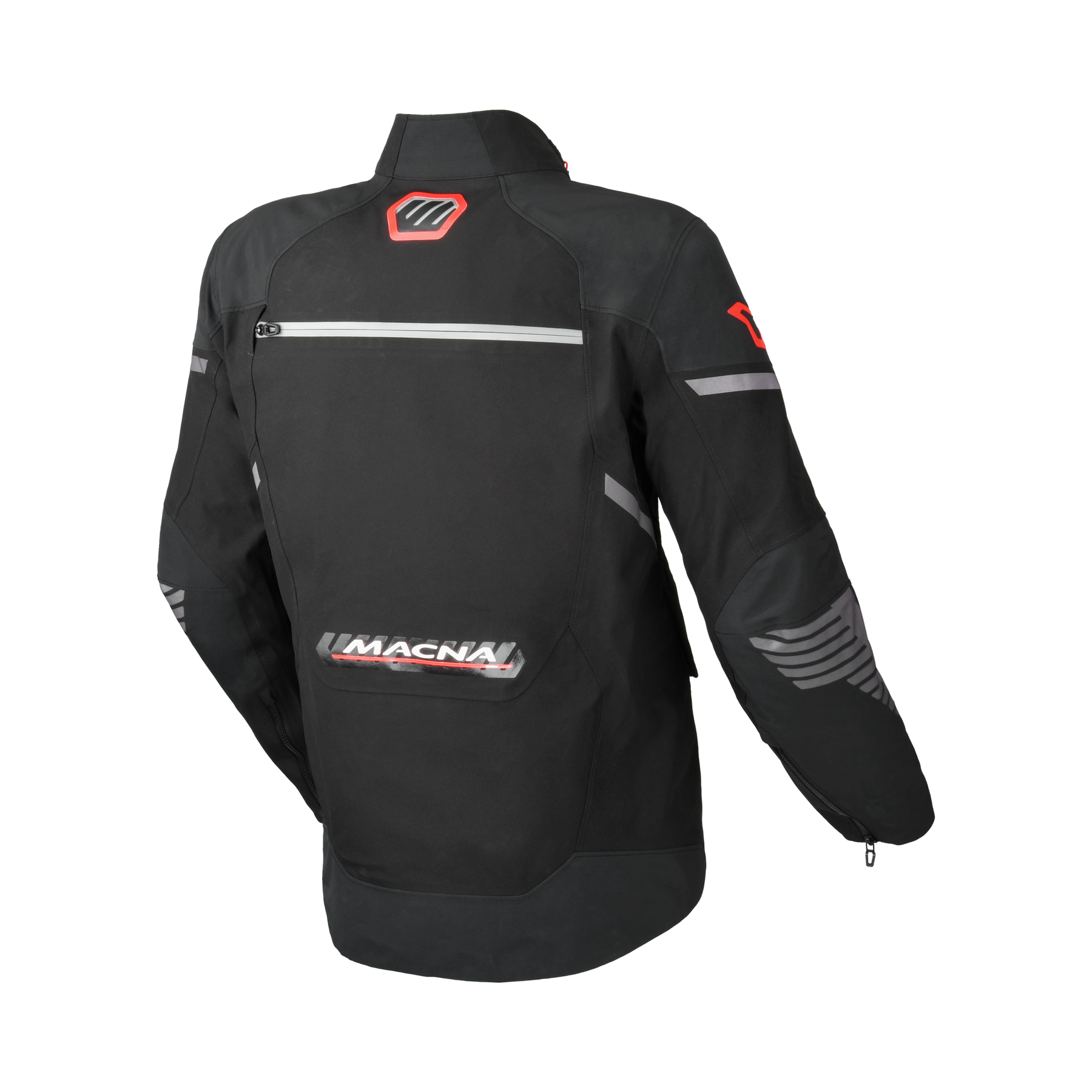 Aan de voorkant van de kraag vind je een Collar Loop™ die de kraag opzij kan houden als je hem liever niet dicht doet. Op de rug zit een Coat Hanger™ die ontwikkeld is om het gewicht van een motorjas te dragen. Aan de onderkant van de hoofdrits hebben we gekozen voor een versteviging die het dichtritsen makkelijker maakt. Het heet Zip Grip™.